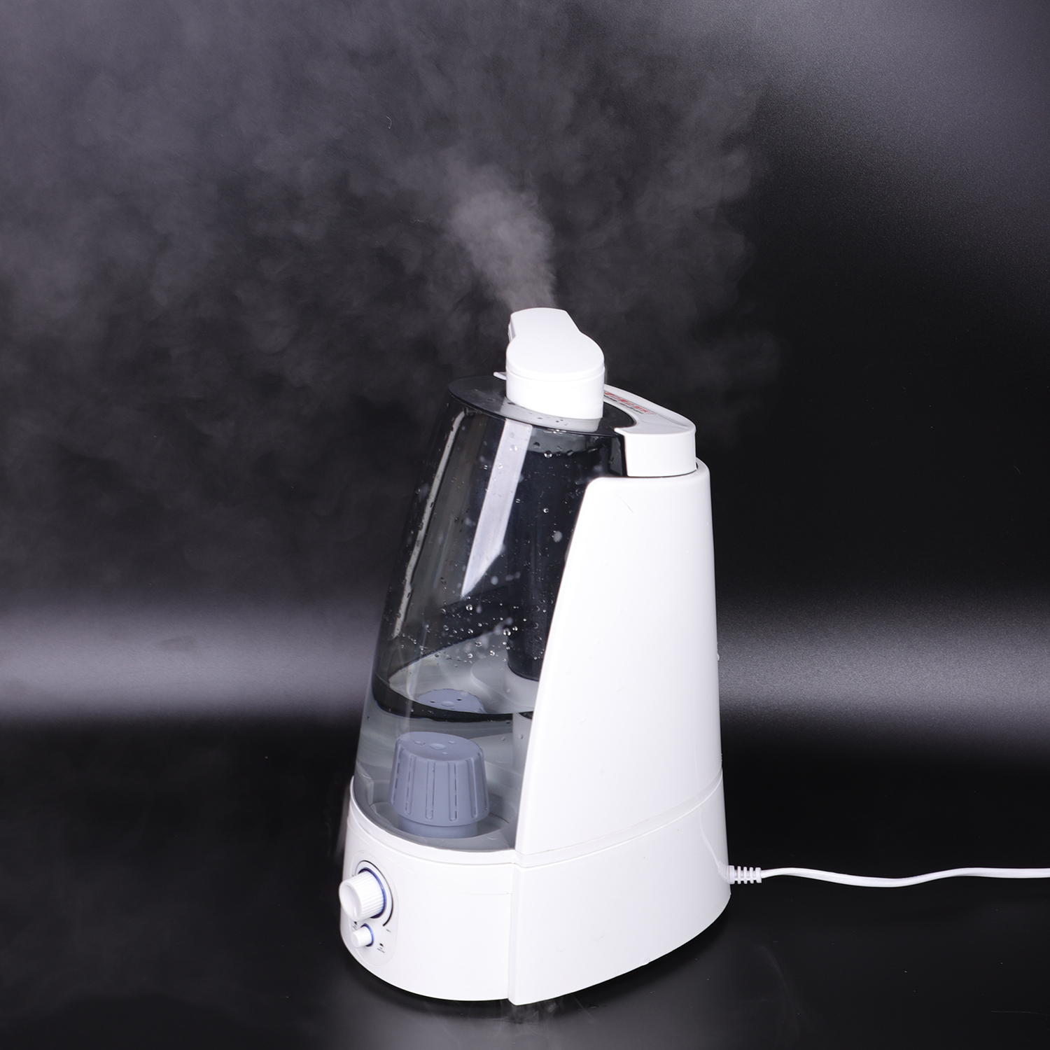 Ovaj ovlaživač zraka s toplom i hladnom maglom može podesiti izlaz magle, dvostruku mlaznicu od 360 stupnjeva, veliki kapacitet, automatsko isključivanje kada je spremnik za vodu prazan, filter od smole nije obavezan, verzija s hladnom i toplom maglom nije obavezna.